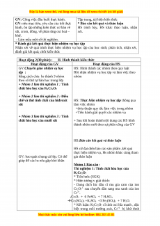 Thí nghiệm 1: Tính chất hóa học của K2Cr2O7 * Tiến hnh: (SGK)