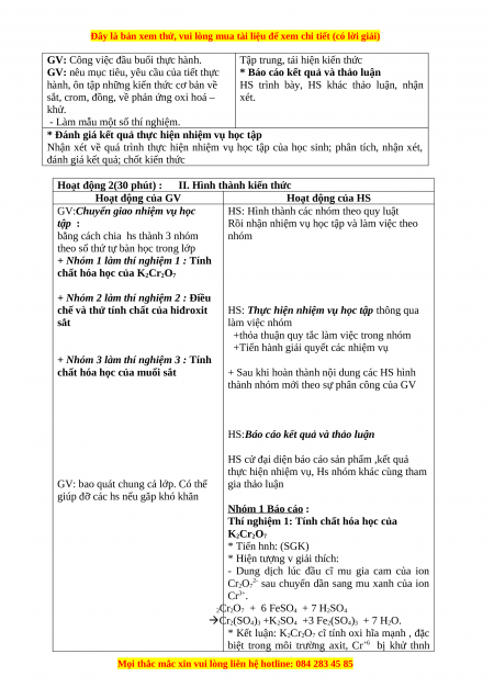 Tính oxi hóa của Cr+6 và tính khử của Cu. 3. Thái độ: