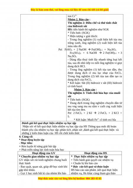 Thí nghiệm 3: Tính chất hóa học của muối sắt * Tiến hnh: (SGK)
