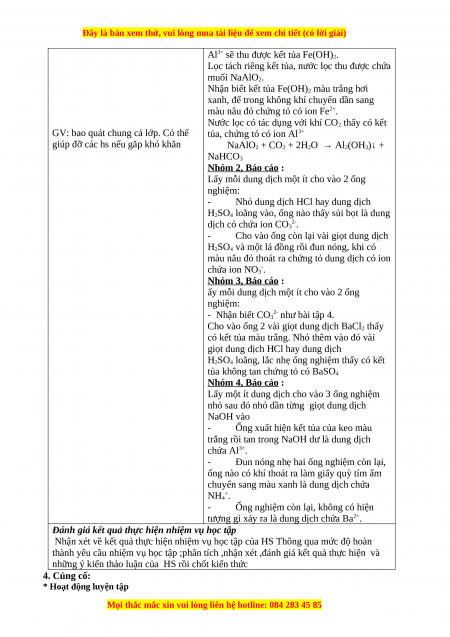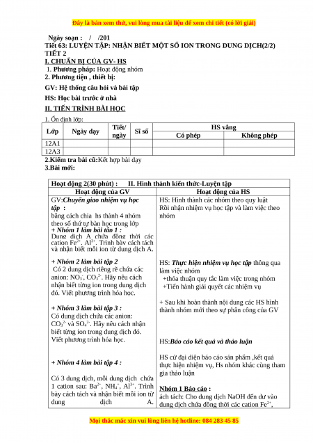 Giáo án Hóa học 12 học kì 2 Tiết 63: Luyện tập: Nhận biết một số ion trong dung dịch