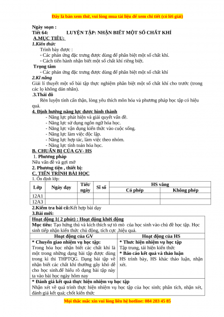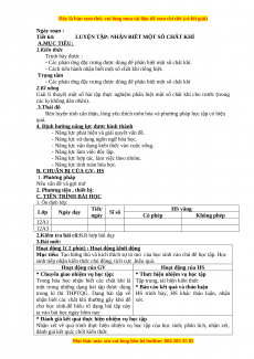 Tiết 64: LUYỆN TẬP: NHẬN BIẾT MỘT SỐ CHẤT KHÍ A . MỤC TIÊU: 1.Kiến thức Trình bày được :