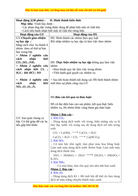 nhóm theo số thứ tự bàn học trong lớp + Nhóm 1 nghiên cứu cách nhận biết CO2 ;SO2 ;NH3