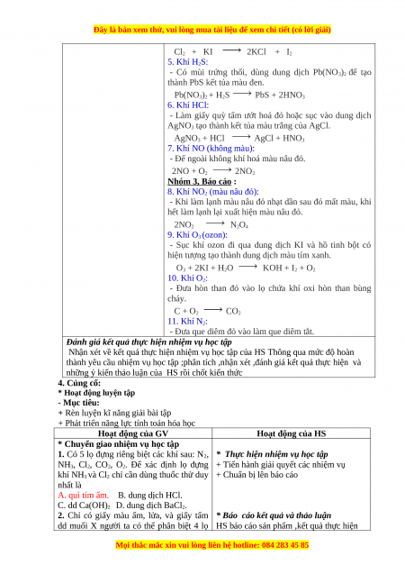 NH3, Cl2, CO2, O2. Để xác định lọ đựng + Tiến hành giải quyết các nhiệm vụ
