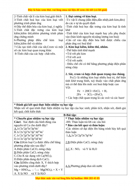 7-Cấu tạo tính chất của sắt,Crom và một 2. Kim loại kiềm, kiềm thổ, nhôm.
