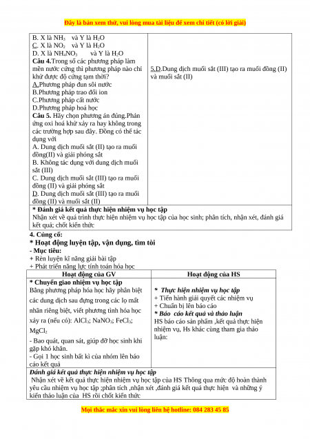 4.A.Phương pháp đun sôi nước Mg + HNO3đặc Mg(NO3)2 + X + Y A. X là NO và Y là H2O