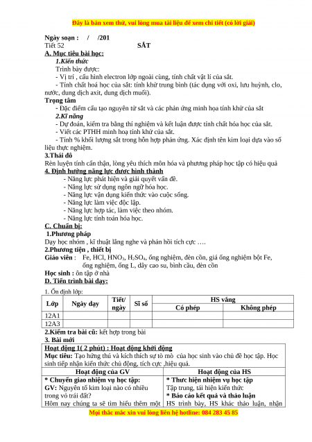Ngày soạn : / /201 Tiết 52 SẮT A . M