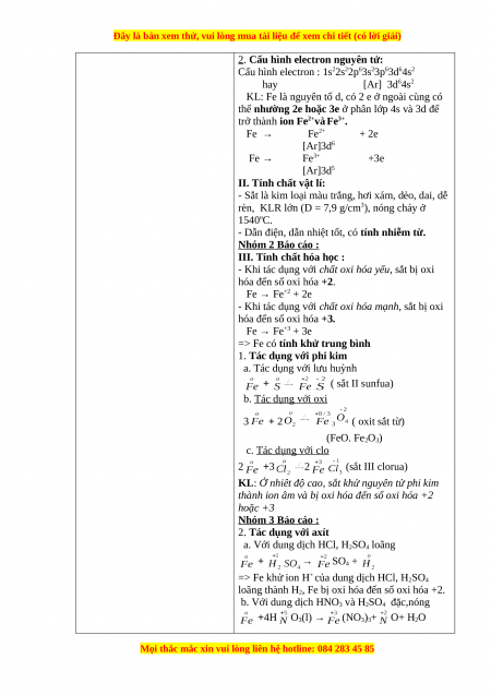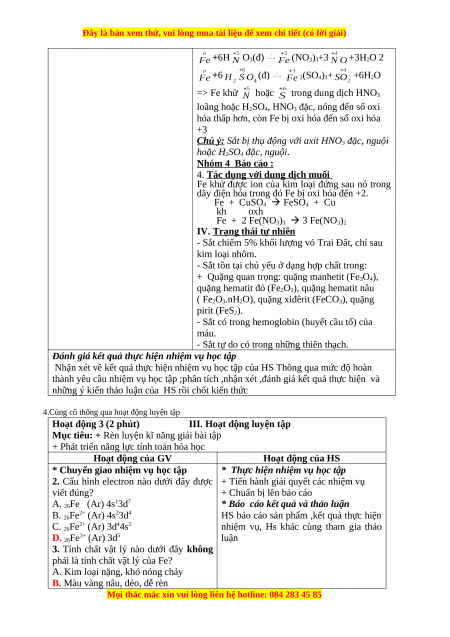 Đặc điểm cấu tạo nguyên tử sắt và các phản ứng minh họa tính khử của sắt 2.Kĩ năng