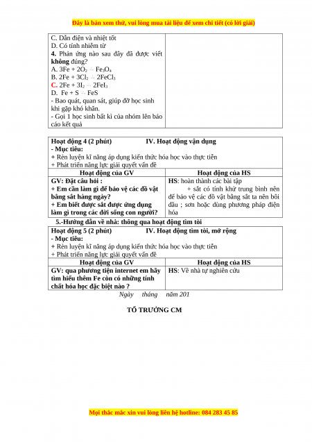 - Dự đoán, kiểm tra bằng thí nghiệm và kết luận được tính chất hóa học của sắt.