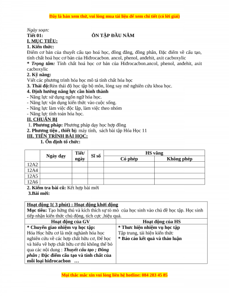 * Trọng tâm: Tính chất hoá học cơ bản của Hiđrocacbon.ancol, phenol, anđehit, axit cacboxylic 2. Kỹ năng: