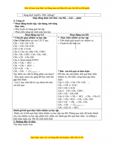 2. Phương tiện , thiết bị: máy tính, sách bài tập Hóa Học 11
