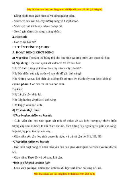 - Video về cây xấu hổ, cây hướng sáng và hạt phát tán.