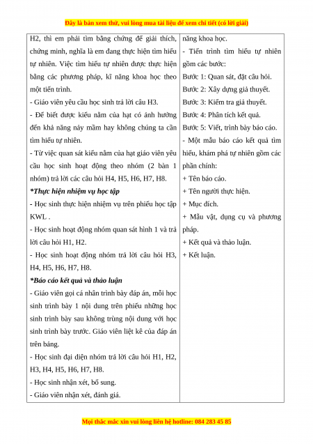 giả thuyết của em cần thực hiện những công việc nào? (VD: Sự nảy mầm của hạt đỗ)