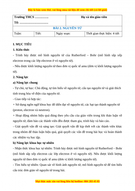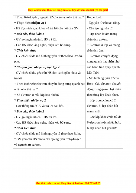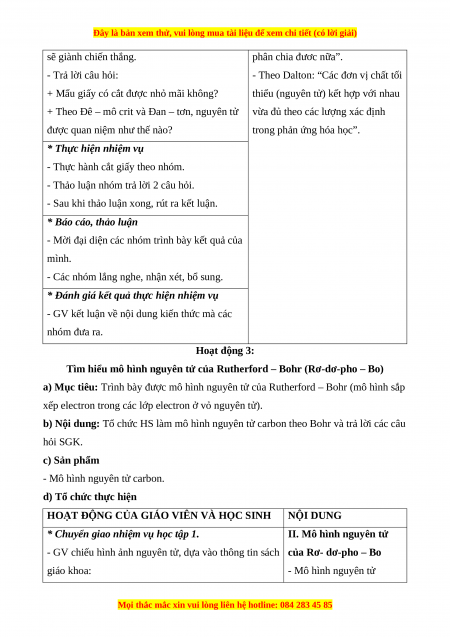 - Nhận thức khoa học tự nhiên: Trình bày được mô hình nguyên tử Rutherford – Bohr