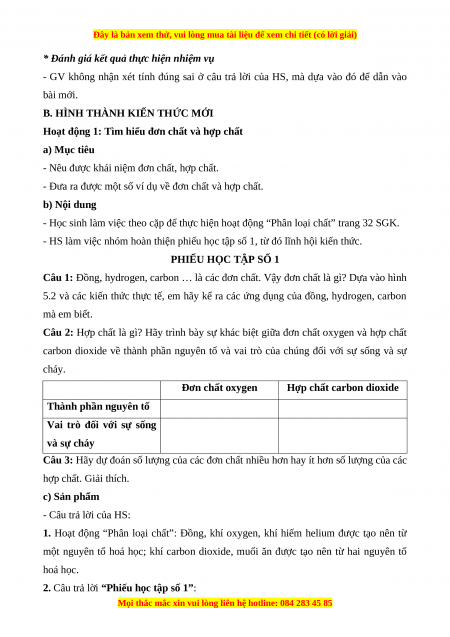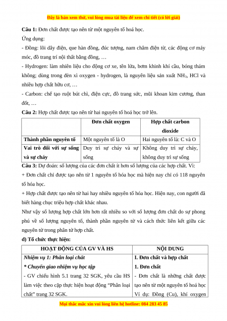 - Đưa ra được một số ví dụ về đơn chất và hợp chất. b) Nội dung