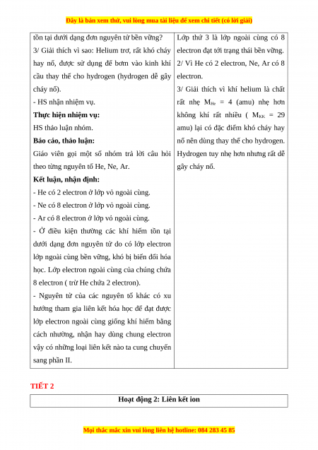 Mở đầu và Hoạt động 1: Tìm hiểu về cấu trúc electron bền vững của khí hiếm. 2