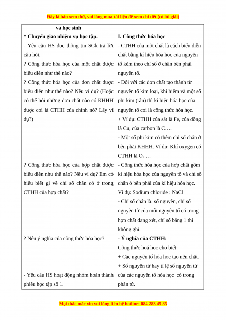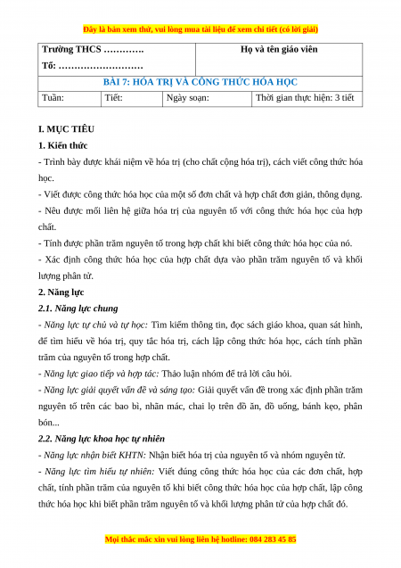 Giáo án Hóa học 7 Kết nối tri thức Bài 7: Hóa trị và công thức hóa học