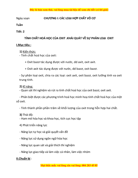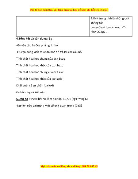 - Sự phân loại oxit, chia ra các loại: oxit axit, oxit bazơ, oxit lưỡng tính va oxit trung tính. 2) Kĩ năng:
