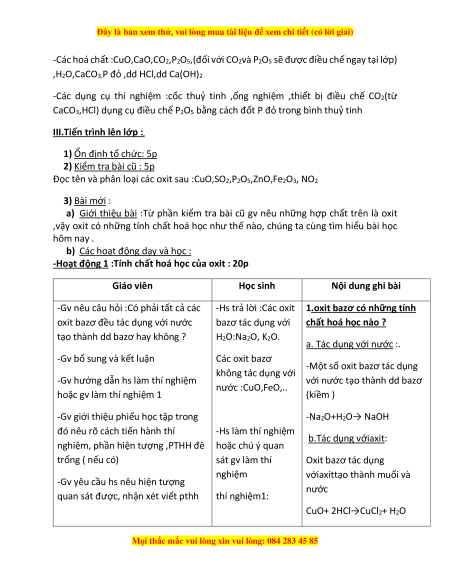 -Các hoá chất :CuO,CaO,CO2,P2O5,(đối với CO2và P2O5 sẽ được điều chế ngay tại lớp)