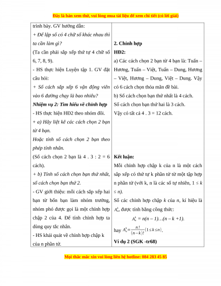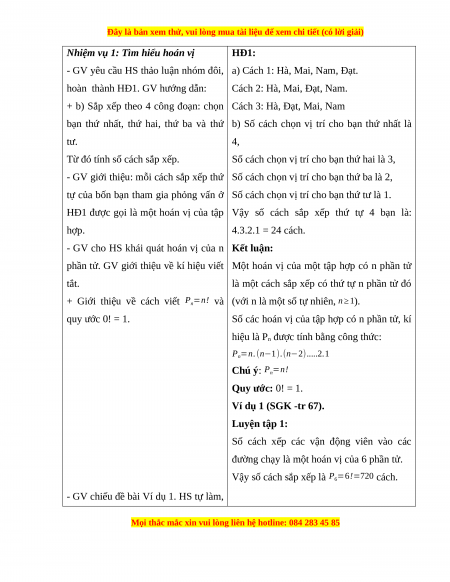 - HS tính được số hoán vị, chỉnh hợp. b) Nội dung: