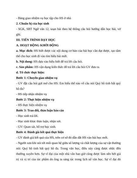 - GV đặt câu hỏi gợi mở cho HS: Em hiểu thế nào về câu nói Quý hồ tinh bất quý hồ đa?