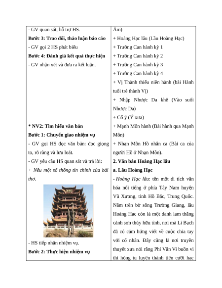 Giáo án Hoàng Hạc lâu Ngữ Văn 12 Chân trời sáng tạo