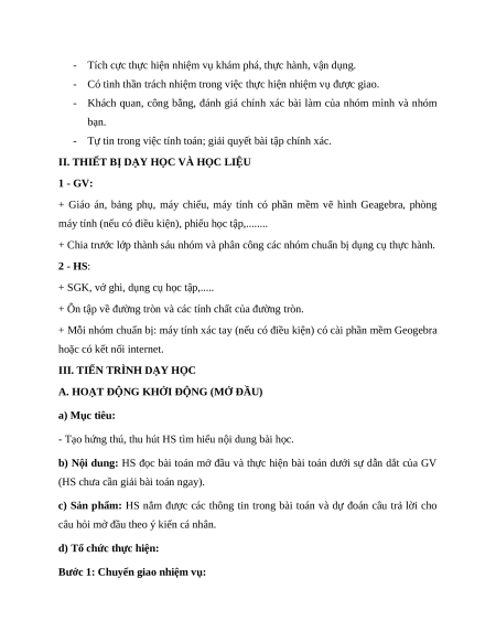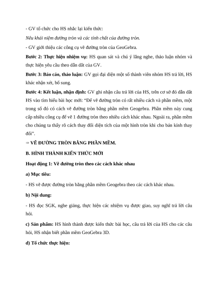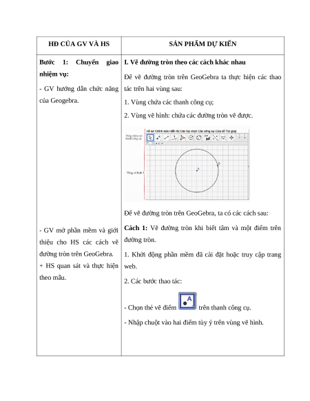 - HS vẽ được đường tròn bằng phần mềm Geogebra theo các cách khác nhau. b) Nội dung: