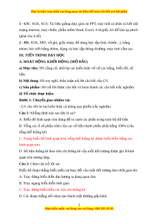 ạ , giáo án PPT, máy tính cá nhân có k t ế n i ộ m n ạ g internet, máy chi u ế , ph n ầ m m ề Word, Excel, 4 t ờ gi y ấ A3 đ ể làm áp phích (phát cho 4 t ). ổ 2 - HS: SGK, SBT, v ở ghi, gi y ấ nháp, đ ồ dùng h c ọ t p ậ (bút, th c. ướ ..), b n ả g nhóm, bút vi t ế b n ả g nhóm, d n ụ g c ụ h c ọ t p ậ thông th n ườ g; máy tính c m ầ tay. III. TI N Ế TRÌNH D Y Ạ H C Ọ A. HOẠT ĐỘNG KH I Ở Đ N Ộ G (M Ở Đ U Ầ ) a) M c ụ tiêu: HS c n ủ g c , ố nh ớ l i ạ các ki n ế th c ứ v ề v ề các b n ả g, bi u ể đ , ồ s ố li u ệ b) N i