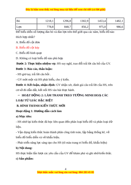 ượ g đàn bò và đàn l n ợ trên th ế gi i ớ qua các năm, bi u ể đ ồ nào thích h p ợ nh t ấ ? A. Bi u ể đ ồ c t ộ đ n ơ B. Bi u ể đ ồ c t ộ kép C. Bi u ể đ ồ hình qu t ạ D. Không có lo i ạ bi u ể đ ồ nào phù h p ợ Bư c ớ 2: Th c ự hi n ệ nhi m ệ v :