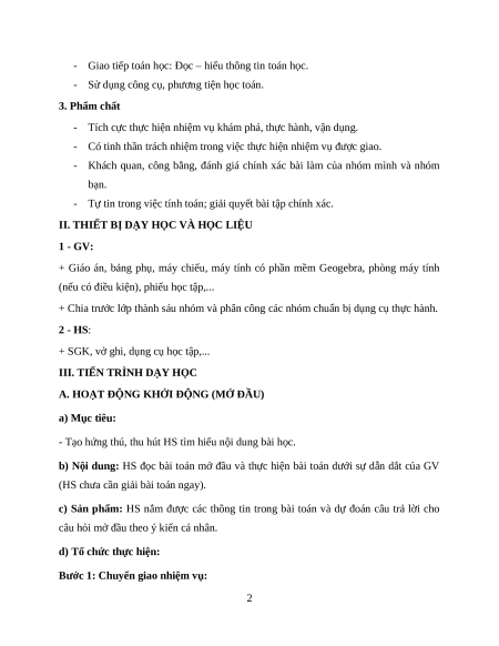 + Giáo án, bảng phụ, máy chiếu, máy tính có phần mềm Geogebra, phòng máy tính