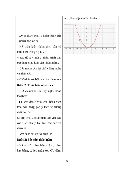 phần HĐ1 theo các bước trong SGK Ví dụ: Vẽ đồ thị hàm số y=0 ,5 x2 hướng dẫn.
