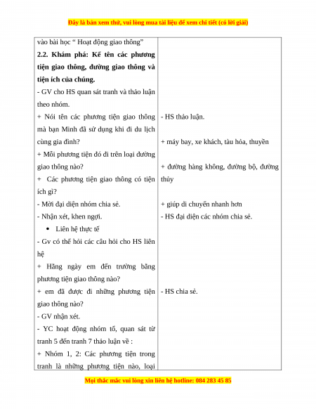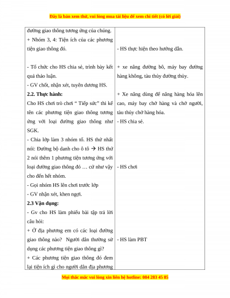 vào bài học “ Hoạt động giao thông”