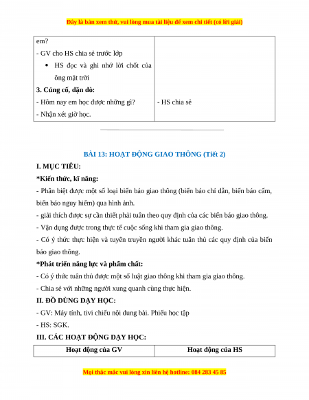 BÀI 13: HOẠT ĐỘNG GIAO THÔNG (Tiết 2) I. MỤC TIÊU: