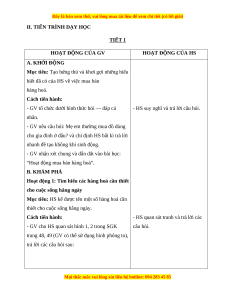 biết đã có của HS về việc mua bán hàng hoá. Cách tiến hành: