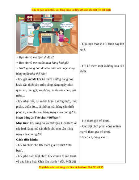 - Nêu được cách mua, bản hàng hoá trong cửa hàng, chợ, siêu thị hoặc trung tâm thương mại.