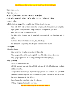 CHỦ ĐỀ 1. MỘT SỐ HÌNH THỨC ĐẦU TƯ TÀI CHÍNH (3 TIẾT) I. MỤC TIÊU: