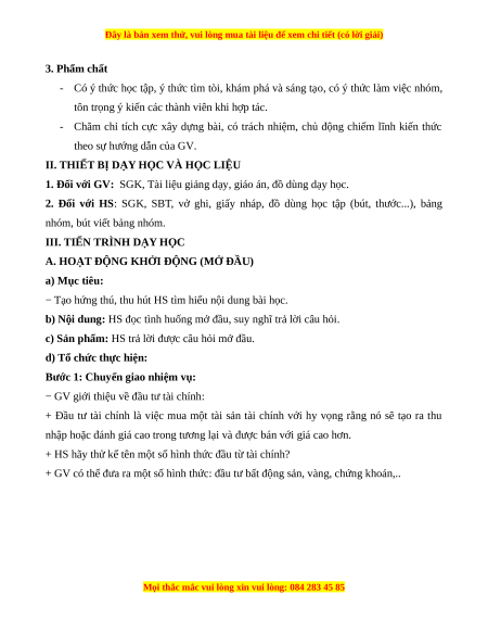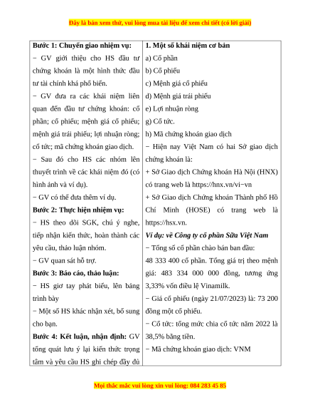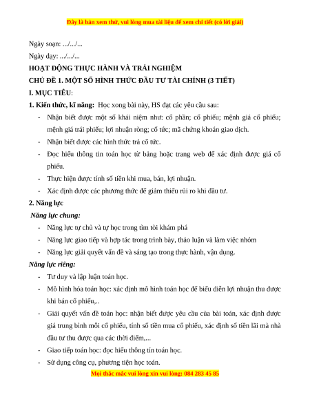 CHỦ ĐỀ 1. MỘT SỐ HÌNH THỨC ĐẦU TƯ TÀI CHÍNH (3 TIẾT)