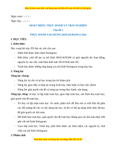 THỰC HÀNH TẠO DỰNG HOLOGRAM (3 tiết) I. MỤC TIÊU: