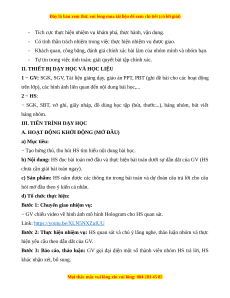 A. HOẠT ĐỘNG KHỞI ĐỘNG (MỞ ĐẦU) a) Mục tiêu: