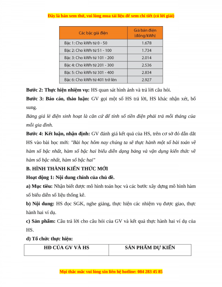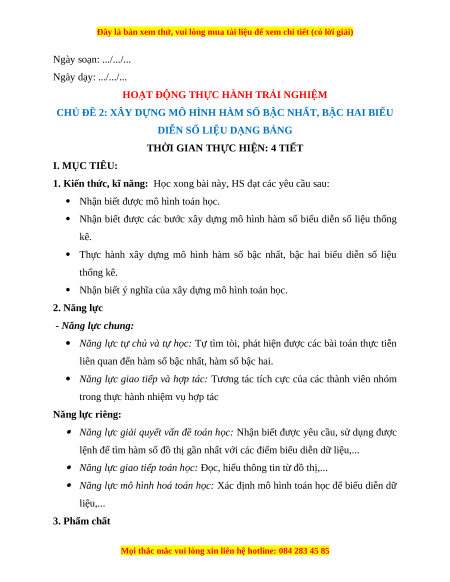 CHỦ ĐỀ 2: XÂY DỰNG MÔ HÌNH HÀM SỐ BẬC NHẤT, BẬC HAI BIỂU