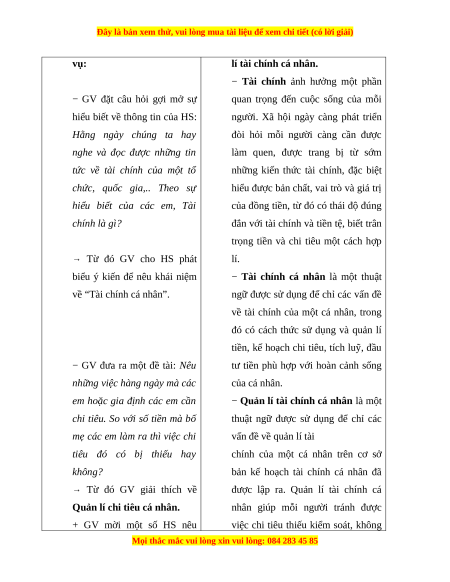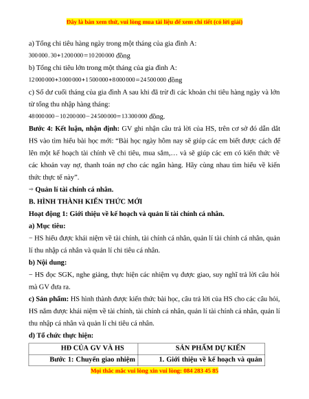 lí thu nhập cá nhân và quản lí chi tiêu cá nhân. b) Nội dung:
