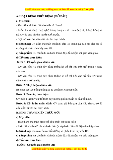 Đây là bản xem th , vu ử i lòng mua tài li u ệ đ xe ể m chi ti t ế (có l i ờ gi i ả ) A. HOẠT Đ N Ộ G KH I Ở Đ N Ộ G (M Đ Ở U Ầ ) a) M c t ụ iêu: - Tìm hi u v ể bi ề n ế đổi th i ờ ti t ế và dân s . ố - Ki m