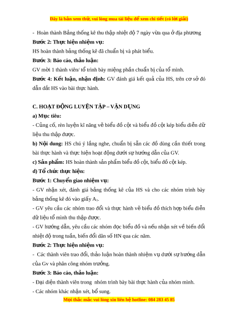 Đây là bản xem th , vu ử i lòng mua tài li u ệ đ xe ể m chi ti t ế (có l i ờ gi i ả ) - Hoàn thành B ng ả thống kê thu th p ậ nhi t ệ đ 7 ngày v ộ a qua ừ đ ở a ị phư ng ơ Bư c ớ 2: Th c hi ự n nhi ệ m ệ v : ụ HS hoàn thành b ng t ả hống kê đã chu n b ẩ và phát ị bi u. ể Bư c