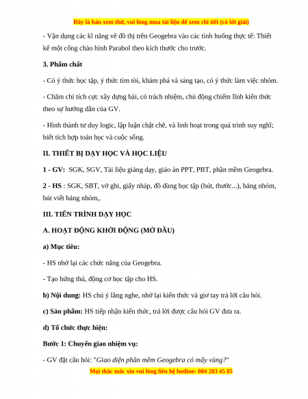 - Sử dụng được máy tính bảng hoặc máy tính xách tay có cài phần mềm Geogebra
