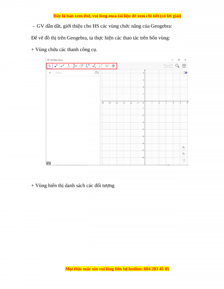 GV dẫn dắt, giới thiệu cho HS các vùng chức năng của Geogebra: