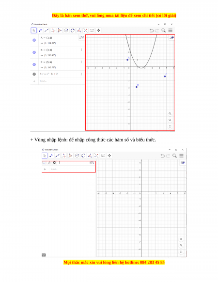 + Vùng nhập lệnh: để nhập công thức các hàm số và biểu thức.