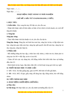 Ủ Ề 1: ĐẦU TƯ VÀ KINH DOANH ( 3 TI T Ế ) I. M C Ụ TIÊU: 1. Ki n t ế h c: