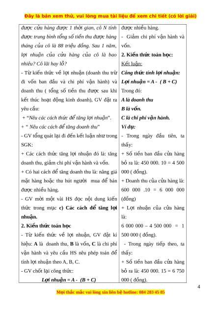 ề tài chính, kinh doanh và cách đ ể tăng l i ợ nhu n. ậ - Giúp HS toán h c ọ hóa công th c ứ và nh n ậ ra đư c ợ m i ố quan hệ gi a ữ các đ i ạ lư ng. ợ b) N i ộ dung: - GV gi ng, ả trình bày.