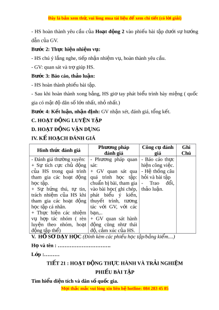 ên : …………………………. L p ớ :……… TIẾT 21 : HOẠT Đ N Ộ G TH C Ự HÀNH VÀ TR I Ả NGHI M Ệ PHI U Ế BÀI T P Ậ Tìm hi u di ể n t ệ ích và dân s qu ố c gi ố a. M i ọ thắc m c