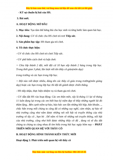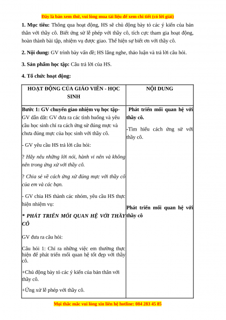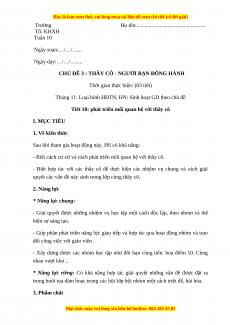 Tiết 10: phát triển mối quan hệ với thầy cô I. MỤC TIÊU 1. Về kiến thức