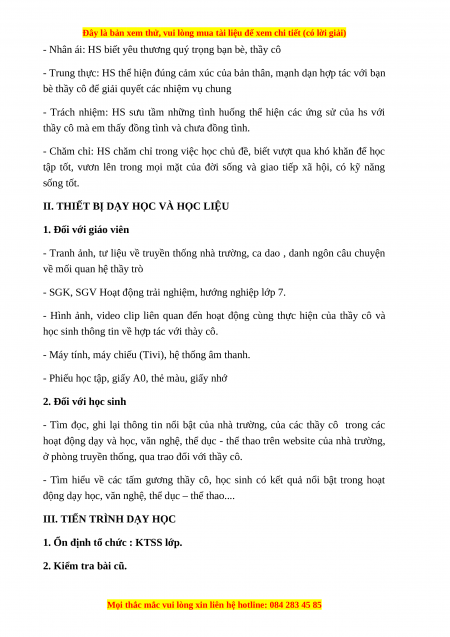 - Nhân ái: HS biết yêu thương quý trọng bạn bè, thầy cô